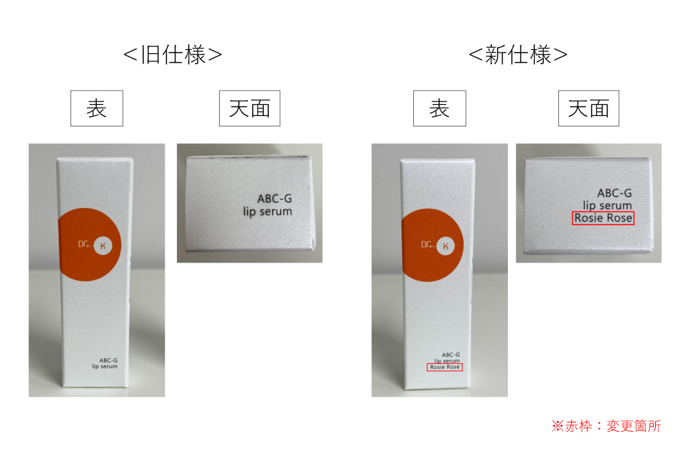 このたび、「ドクターケイ ABC-Gリップセラム ロージーローズ」の化粧箱の仕様を変更いたしますので、下記の通りご案内いたします。