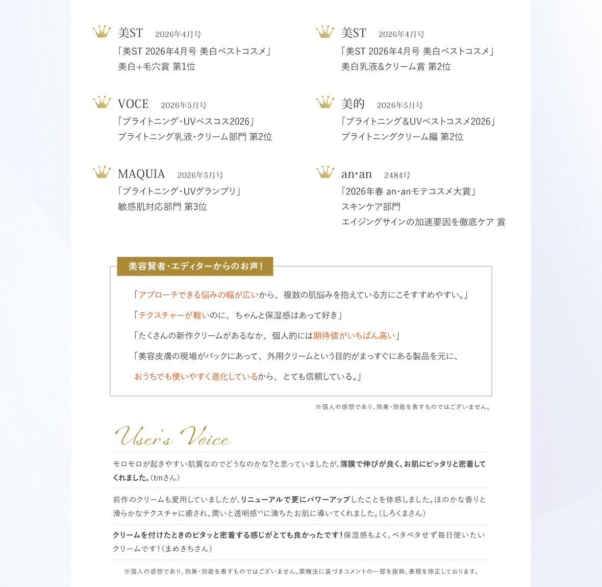 美容家、雑誌読者がコスメを評価する「ベストコスメ」に輝いた受賞製品をご紹介します。