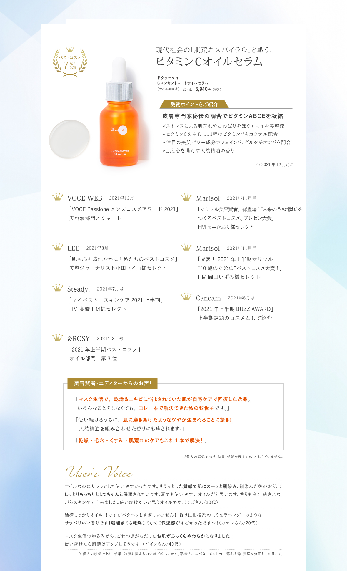 ドクターケイのベストコスメ受賞製品