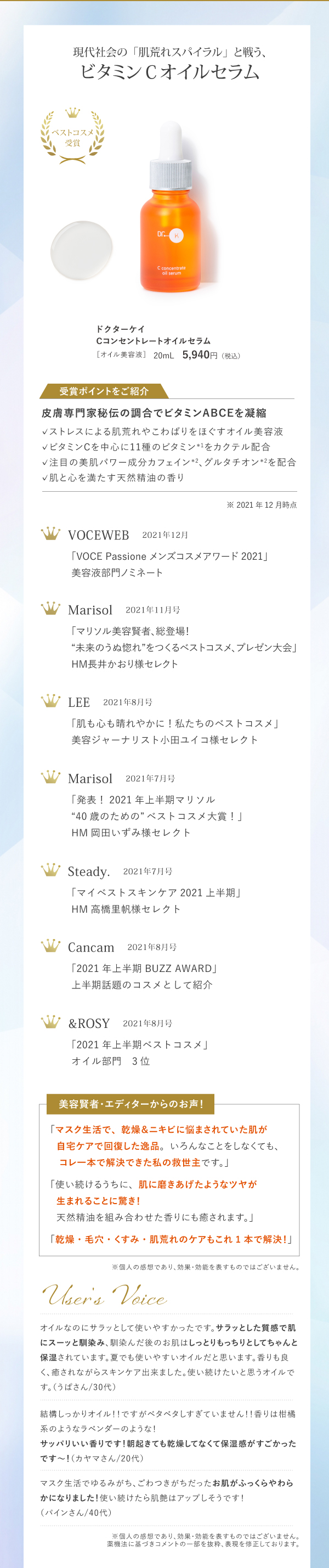 トップページ / ドクターケイのベストコスメ受賞製品