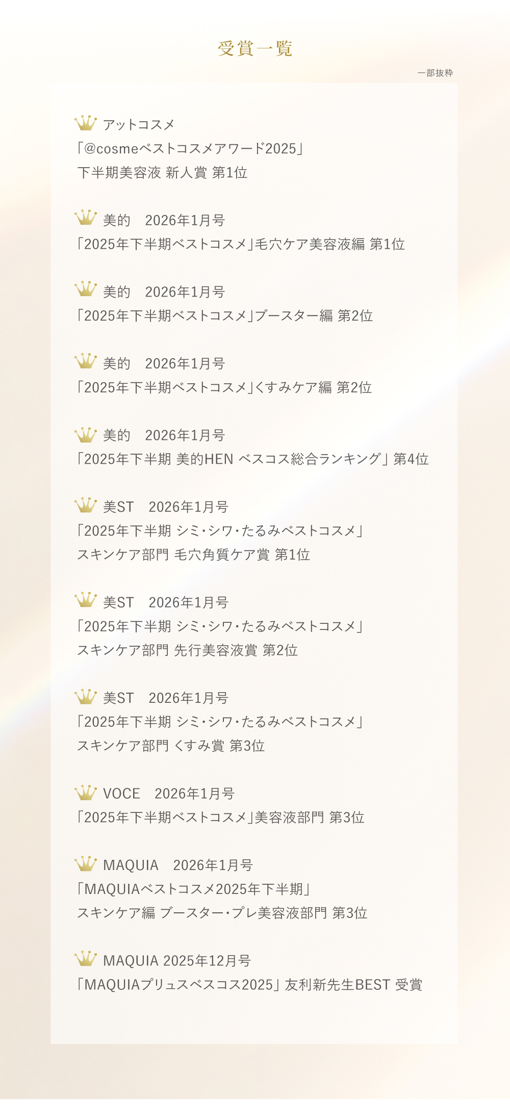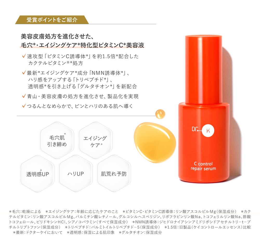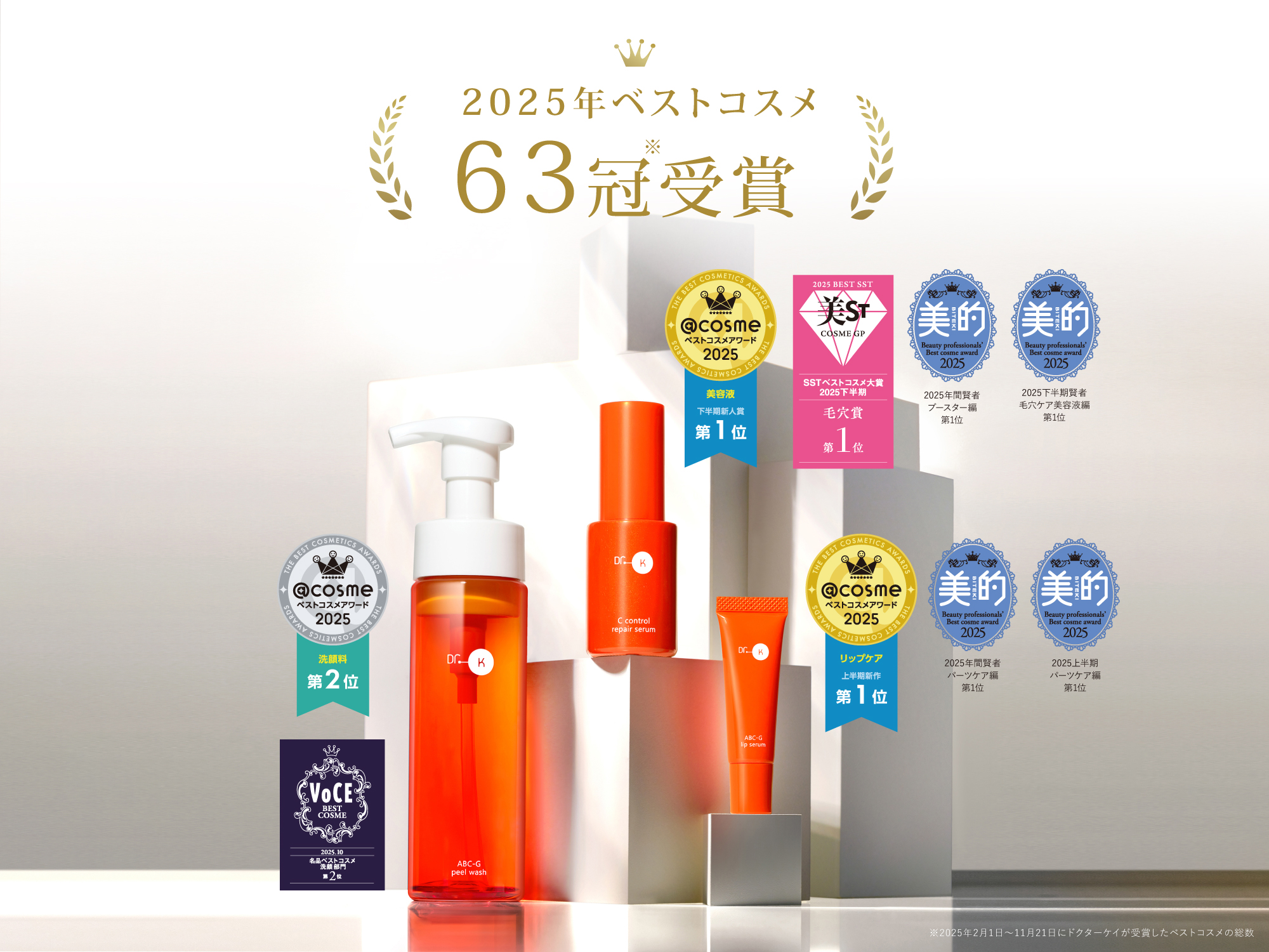 2025年7月に新発売した「Cコントロールリペアセラム」を筆頭に「ABC-Gピールウォッシュ」「ABC-Gリップセラム」が美容誌をはじめとする各メディアで、数々のベストコスメを受賞いたしました。多くの方にお選びいただいた製品を、ぜひこの機会にお試しください。